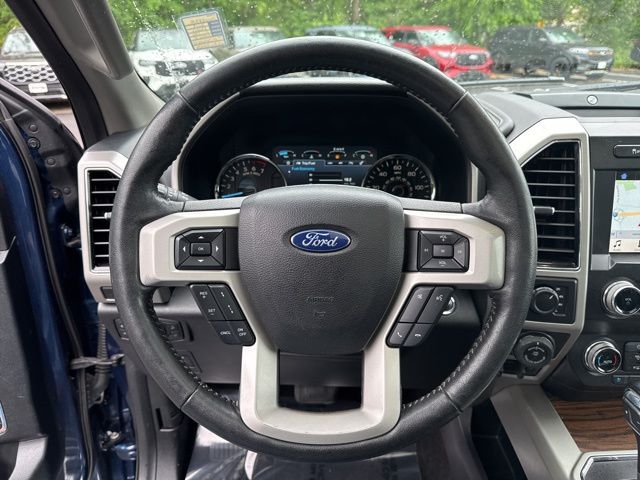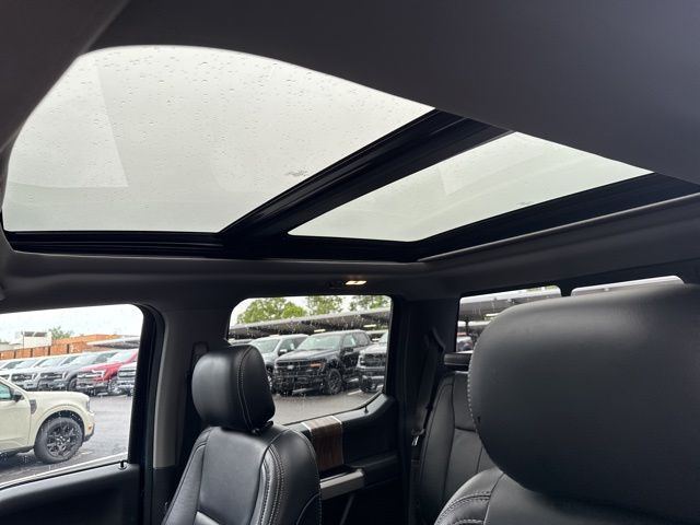 Equipment Group 502A Luxury, GVWR: 7,050 lbs Payload Package, Lariat Chrome Appearance Package (Chrome 2-Bar Grille w/4 Minor Bars, Chrome Angular Step Bars, Chrome Door & Tailgate Handles w/Body-Color Bezel, Chrome Skull Caps on Exterior Mirrors, Single-Tip Chrome Exhaust, and Wheels: 18" Chrome-Like PVD), Technology Package (Active Park Assist and Lane-Keeping System), Trailer Tow Package (Class IV Trailer Hitch Receiver, Engine Oil Cooler, Pro Trailer Backup Assist, and Upgraded Front Stabilizer Bar), 18" Machined-Aluminum Wheels, 4-Wheel Disc Brakes, 7 Speakers, ABS brakes, Adaptive Cruise Control, Adjustable pedals, Air Conditioning, Alloy wheels, AM/FM radio: SiriusXM, AppLink/Apple CarPlay and Android Auto, Auto High-beam Headlights, Auto-dimming door mirrors, Auto-dimming Rear-View mirror, Automatic temperature control, Brake assist, Bumpers: chrome, Compass, Delay-off headlights, Driver door bin, Driver vanity mirror, Dual front impact airbags, Dual front side impact airbags, Electronic Stability Control, Emergency communication system: SYNC 3 911 Assist, Extended Range 36 Gallon Fuel Tank, Exterior Parking Camera Rear, Foldable Pickup Box Bed Extender, Front anti-roll bar, Front Center Armrest w/Storage, Front dual zone A/C, Front fog lights, Front License Plate Bracket, Front reading lights, Front wheel independent suspension, Fully automatic headlights, Heated door mirrors, Heated front seats, Illuminated entry, Leather-Trimmed 40/20/40 Front Seat, Low tire pressure warning, Memory seat, Occupant sensing airbag, Outside temperature display, Overhead airbag, Overhead console, Panic alarm, Passenger door bin, Passenger vanity mirror, Pedal memory, Power door mirrors, Power driver seat, Power passenger seat, Power steering, Power windows, Radio data system, Radio: AM/FM Stereo w/6 Speakers, Rear reading lights, Rear seat center armrest, Rear step bumper, Rear window defroster, Remote keyless entry, Security system, SiriusXM Radio, Speed control, Speed-sensing steering, Split folding rear seat, Steering wheel mounted audio controls, SYNC 3, Tachometer, Tailgate Step w/Tailgate Lift Assist, Telescoping steering wheel, Tilt steering wheel, Tough Bed Spray-In Bedliner, Traction control, Trip computer, Turn signal indicator mirrors, Twin Panel Moonroof, Variably intermittent wipers, Ventilated front seats, Voice-Activated Touchscreen Navigation, and Voltmeter.