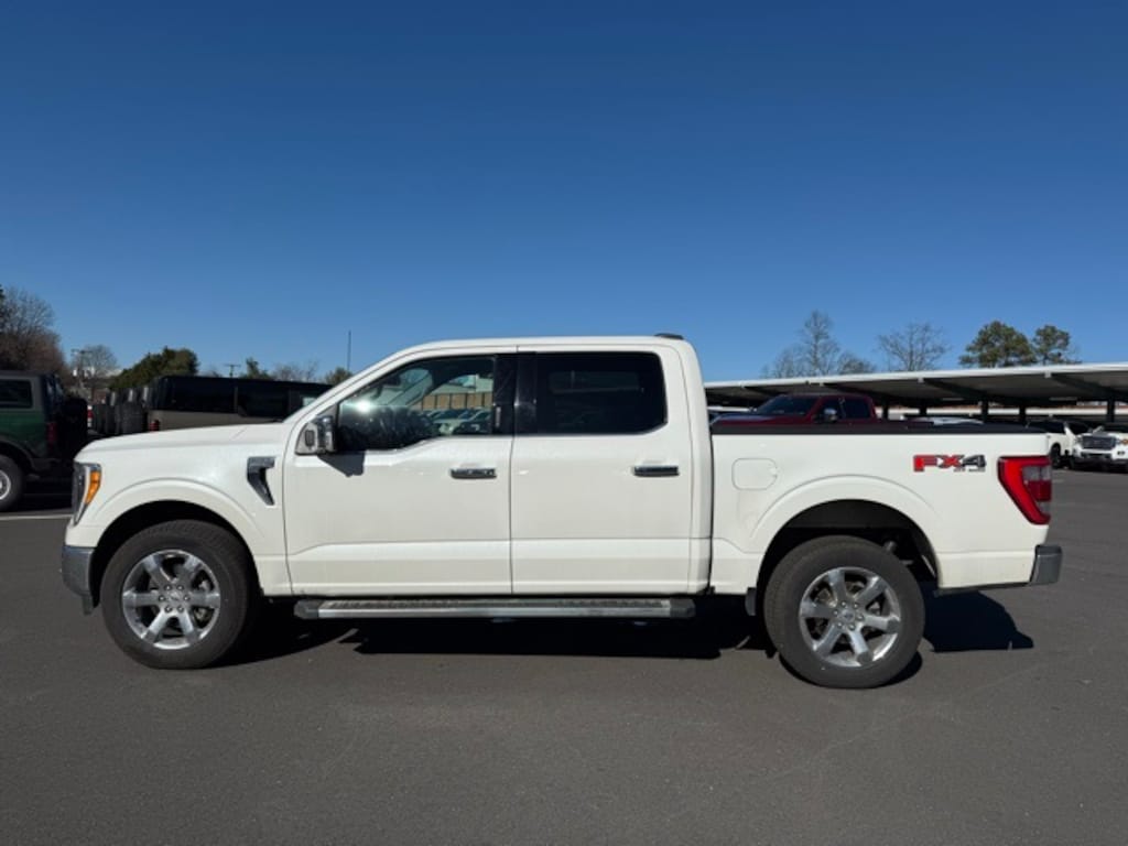 Bed Utility Package (BoxLink, LED Box Lighting, Power Tailgate, and Tailgate Step w/Tailgate Work Surface), Equipment Group 501A Mid (Onboard 400W Outlet and Radio: B&O Sound System by Bang & Olufsen), Ford Co-Pilot360 Assist 2.0 (DISC) (Connected Built-In Navigation, Evasive Steering Assist, Intelligent Adaptive Cruise Control w/Stop & Go, Intersection Assist, and Speed Sign Recognition), FX4 Off-Road Package (Tray Style Floor Liner (47W)), Lariat Chrome Appearance Package (6" Bright Polished Running Board, Chrome 2-Bar Grille w/4 Minor Bars, Chrome Door & Tailgate Handles w/Body-Color Bezel, Chrome Single-Tip Exhaust, Chrome Skull Caps on Exterior Mirrors, and Wheels: 18" Chrome-Like PVD), Trailer Tow Package (Class IV Trailer Hitch Receiver, Integrated Trailer Brake Controller, and Pro Trailer Backup Assist), 18" Machined-Aluminum Wheels, 360 Degree Camera, 4-Wheel Disc Brakes, 7 Speakers, ABS brakes, Adjustable pedals, Air Conditioning, Alloy wheels, AM/FM radio: SiriusXM with 360L, Auto High-beam Headlights, Auto Start-Stop Removal, Auto-dimming door mirrors, Auto-dimming Rear-View mirror, Automatic temperature control, Brake assist, Bumpers: chrome, Compass, Delay-off headlights, Driver door bin, Driver vanity mirror, Dual front impact airbags, Dual front side impact airbags, Electronic Stability Control, Emergency communication system: SYNC 4 911 Assist, Extended Range 36 Gallon Fuel Tank, Exterior Parking Camera Rear, Front anti-roll bar, Front Center Armrest w/Storage, Front dual zone A/C, Front fog lights, Front reading lights, Front wheel independent suspension, Fully automatic headlights, Heated door mirrors, Heated front seats, Illuminated entry, Leather-Trimmed 40/20/40 Front Seat, LED Sideview Mirror Spotlights, Low tire pressure warning, Memory seat, Occupant sensing airbag, Outside temperature display, Overhead airbag, Overhead console, Panic alarm, Passenger door bin, Passenger vanity mirror, Pedal memory, Power door mirrors, Power driver seat, Power passenger seat, Power steering, Power windows, Radio data system, Radio: AM/FM SiriusXM w/360L, Rear reading lights, Rear seat center armrest, Rear step bumper, Rear window defroster, Remote keyless entry, Security system, Speed control, Speed-sensing steering, Split folding rear seat, Steering wheel mounted audio controls, SYNC 4 w/Enhanced Voice Recognition, Tachometer, Telescoping steering wheel, Tilt steering wheel, Traction control, Trip computer, Turn signal indicator mirrors, Variably intermittent wipers, Ventilated front seats, Voltmeter, and Wheels: 20" Chrome-Like PVD.