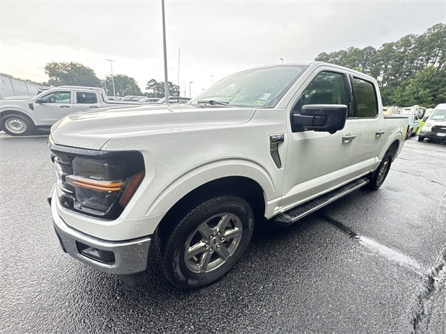 Oxford White 2024 Ford F-150 XLT RWD 10-Speed Automatic 3.5L V6 EcoBoost 3.55 Axle Ratio, 4-Wheel Disc Brakes, 6 Speakers, ABS brakes, Air Conditioning, Alloy wheels, AM/FM radio: SiriusXM with 360L, Auto High-beam Headlights, Auto-dimming Rear-View mirror, Automatic temperature control, Brake assist, Bumpers: chrome, Chrome wheels, Cloth 40/20/40 Front Seat, Compass, Delay-off headlights, Driver door bin, Driver vanity mirror, Dual front impact airbags, Dual front side impact airbags, Electronic Locking w/3.55 Axle Ratio, Electronic Stability Control, Emergency communication system: SYNC 4 911 Assist, Equipment Group 301A Standard, Front anti-roll bar, Front Center Armrest w/Storage, Front dual zone A/C, Front fog lights, Front License Plate Bracket, Front reading lights, Front wheel independent suspension, Fully automatic headlights, GVWR: 6,426 lbs Payload Package, Heated door mirrors, Illuminated entry, Integrated Trailer Brake Controller, Low tire pressure warning, Navigation system: Connected Navigation, Occupant sensing airbag, Outside temperature display, Overhead airbag, Overhead console, Panic alarm, Passenger door bin, Passenger vanity mirror, Power door mirrors, Power driver seat, Power steering, Power windows, Radio data system, Radio: AM/FM SiriusXM w/360L, Rear reading lights, Rear step bumper, Rear window defroster, Remote keyless entry, Security system, Speed control, Split folding rear seat, Steering wheel mounted audio controls, SYNC 4 w/Enhanced Voice Recognition, Tachometer, Telescoping steering wheel, Tilt steering wheel, Tow/Haul Package, Traction control, Trip computer, Variably intermittent wipers, Voltmeter, Wheels: 18" Chrome-Like PVD.