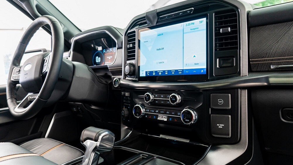 The available 12-inch touchscreen display is the largest ever offered in an F-150. Coupled with the massive and intuitive screen is a new SYNC® 4 infotainment interface. With the updated interface, you'll enjoy quick responses to your commands, whether the commands are voice-activated or touch-sensitive.