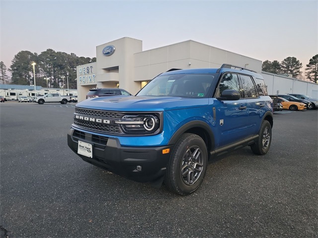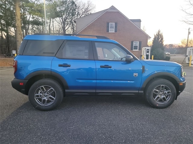 Velocity Blue Metallic 2025 Ford Bronco Sport Big Bend 4WD 8-Speed Automatic 1.5L EcoBoost 4-Wheel Disc Brakes, 6 Speakers, ABS brakes, Air Conditioning, Alloy wheels, AM/FM radio: SiriusXM, AM/FM Stereo, Auto High-beam Headlights, Automatic temperature control, Brake assist, Cargo Management System (Shelf/Divider/Table), Cloth w/Easy-to-Clean Front Bucket Seats, Compass, Convenience Package, Delay-off headlights, Driver door bin, Driver vanity mirror, Dual front impact airbags, Dual front side impact airbags, Electronic Stability Control, Emergency communication system: SYNC 4 911 Assist, Four wheel independent suspension, Front anti-roll bar, Front Bucket Seats, Front Center Armrest, Front Driver/Passenger Seat Back Map Pockets, Front License Plate Bracket, Front reading lights, Fully automatic headlights, Heated 8-Way Power Driver's Seat, Heated door mirrors, Illuminated entry, Knee airbag, LED Fog Lamps, Low tire pressure warning, Occupant sensing airbag, Outside temperature display, Overhead airbag, Overhead console, Panic alarm, Passenger door bin, Passenger vanity mirror, Power door mirrors, Power steering, Power windows, Premium Wrapped Steering Wheel, Radio data system, Rear anti-roll bar, Rear Parking Sensors, Rear reading lights, Rear seat center armrest, Rear window defroster, Rear window wiper, Remote keyless entry, Security system, SiriusXM, Speed control, Speed-sensing steering, Speed-Sensitive Wipers, Split folding rear seat, Steering wheel mounted audio controls, SYNC 4 w/Enhanced Voice Recognition, Tachometer, Telescoping steering wheel, Tilt steering wheel, Traction control, Trip computer, Universal Garage Door Opener (UGDO), Variably intermittent wipers, Wheels: 17" Carbonized Gray-Painted Aluminum.