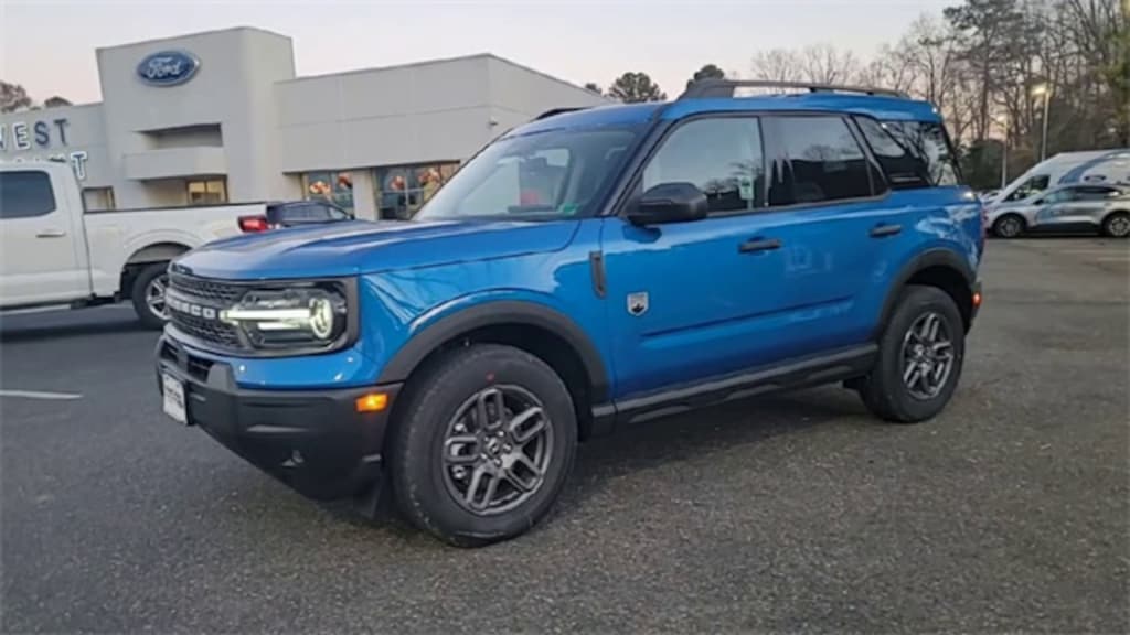 Velocity Blue Metallic 2025 Ford Bronco Sport Big Bend 4WD 8-Speed Automatic 1.5L EcoBoost 4-Wheel Disc Brakes, 6 Speakers, ABS brakes, Air Conditioning, Alloy wheels, AM/FM radio: SiriusXM, AM/FM Stereo, Auto High-beam Headlights, Automatic temperature control, Brake assist, Cargo Management System (Shelf/Divider/Table), Cloth w/Easy-to-Clean Front Bucket Seats, Compass, Convenience Package, Delay-off headlights, Driver door bin, Driver vanity mirror, Dual front impact airbags, Dual front side impact airbags, Electronic Stability Control, Emergency communication system: SYNC 4 911 Assist, Four wheel independent suspension, Front anti-roll bar, Front Bucket Seats, Front Center Armrest, Front Driver/Passenger Seat Back Map Pockets, Front License Plate Bracket, Front reading lights, Fully automatic headlights, Heated 8-Way Power Driver's Seat, Heated door mirrors, Illuminated entry, Knee airbag, LED Fog Lamps, Low tire pressure warning, Occupant sensing airbag, Outside temperature display, Overhead airbag, Overhead console, Panic alarm, Passenger door bin, Passenger vanity mirror, Power door mirrors, Power steering, Power windows, Premium Wrapped Steering Wheel, Radio data system, Rear anti-roll bar, Rear Parking Sensors, Rear reading lights, Rear seat center armrest, Rear window defroster, Rear window wiper, Remote keyless entry, Security system, SiriusXM, Speed control, Speed-sensing steering, Speed-Sensitive Wipers, Split folding rear seat, Steering wheel mounted audio controls, SYNC 4 w/Enhanced Voice Recognition, Tachometer, Telescoping steering wheel, Tilt steering wheel, Traction control, Trip computer, Universal Garage Door Opener (UGDO), Variably intermittent wipers, Wheels: 17" Carbonized Gray-Painted Aluminum.