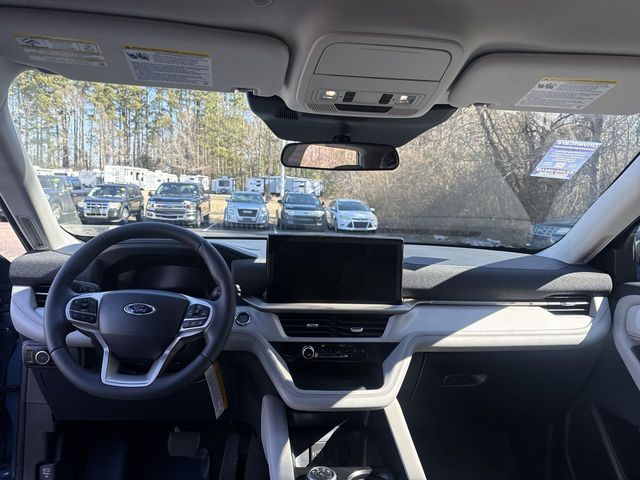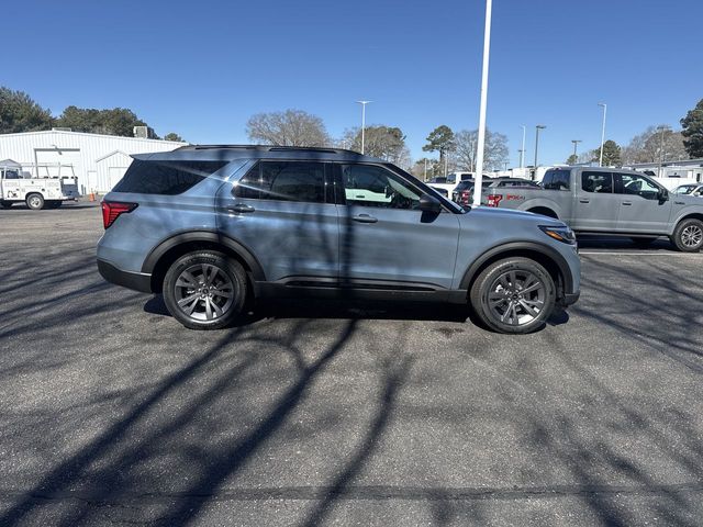 Vapor Blue Metallic 2026 Ford Explorer Active 4WD 10-Speed Automatic 2.3L EcoBoost I-4 4WD, 3rd row seats: bench, 4-Wheel Disc Brakes, 6 Speakers, ABS brakes, Air Conditioning, Alloy wheels, AM/FM radio: SiriusXM with 360L, AM/FM Stereo, Apple CarPlay/Android Auto, Auto High-beam Headlights, Automatic temperature control, Brake assist, Bumpers: body-color, Compass, Delay-off headlights, Driver door bin, Driver vanity mirror, Dual front impact airbags, Dual front side impact airbags, Electronic Stability Control, Emergency communication system: 911 Assist, Exterior Parking Camera Rear, Four wheel independent suspension, Front and Second Rows Floor Liners Without Floor Mats, Front anti-roll bar, Front Bucket Seats, Front Center Armrest, Front dual zone A/C, Front License Plate Bracket, Front reading lights, Fully automatic headlights, Heated door mirrors, Illuminated entry, Knee airbag, Low tire pressure warning, Navigation System, Occupant sensing airbag, Outside temperature display, Overhead airbag, Overhead console, Panic alarm, Passenger door bin, Passenger vanity mirror, Power door mirrors, Power driver seat, Power steering, Power windows, Rear air conditioning, Rear anti-roll bar, Rear reading lights, Rear window defroster, Rear window wiper, Remote keyless entry, Security system, Speed control, Speed-sensing steering, Speed-Sensitive Wipers, Split folding rear seat, Spoiler, Steering wheel mounted audio controls, Tachometer, Telescoping steering wheel, Tilt steering wheel, Traction control, Trip computer, Variably intermittent wipers, Wheels: 18" Sparkle Silver-Painted Aluminum, 4WD.