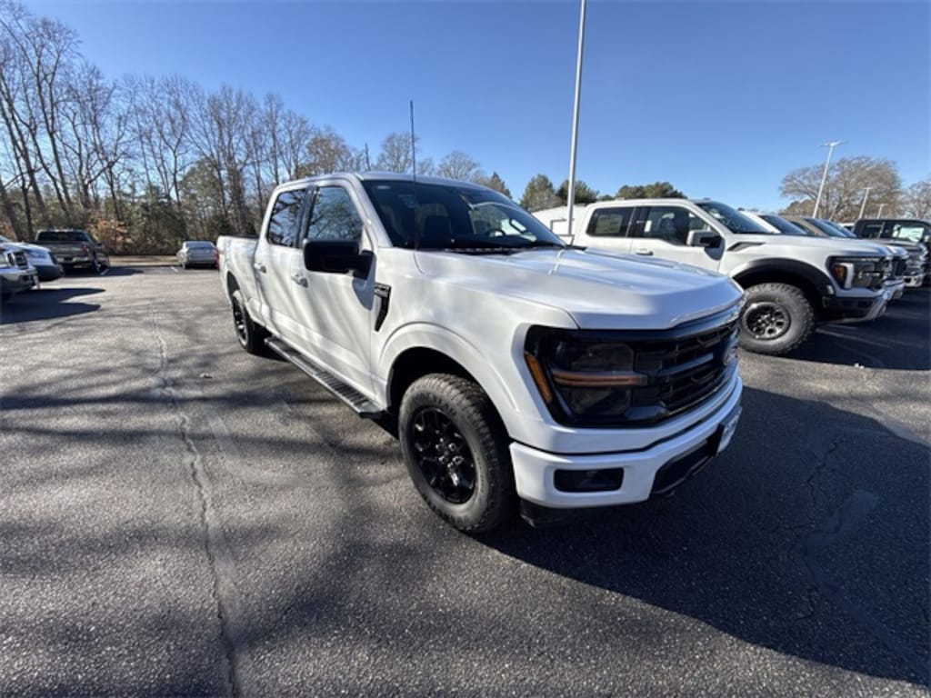 White 2026 Ford F-150 XLT 4WD 10-Speed Automatic 3.5L V6 EcoBoost 4WD, 18" Painted Aluminum Wheels, 4 Pickup Box Tie-Down Plates, 4-Wheel Disc Brakes, 6 Speakers, ABS brakes, Air Conditioning, Alloy wheels, AM/FM radio: SiriusXM with 360L, Auto High-beam Headlights, Bed Storage Boxes, Bed Utility Package, Brake assist, Bumpers: body-color, Cloth 40/20/40 Front Seat, Compass, Delay-off headlights, Driver door bin, Driver vanity mirror, Dual front impact airbags, Dual front side impact airbags, Dual-Zone Electronic Automatic Temperature Control, Electronic Stability Control, Emergency communication system: SYNC 4 911 Assist, Equipment Group 301A Standard, Ford Connectivity Package (1-Year Included), Front anti-roll bar, Front Center Armrest, Front fog lights, Front License Plate Bracket, Front reading lights, Front wheel independent suspension, Fully automatic headlights, Heated door mirrors, Illuminated entry, Internet access capable: 5G Modem - Ford Connectivity Package, LED Box Lighting, Low tire pressure warning, Occupant sensing airbag, Outside temperature display, Overhead airbag, Overhead console, Panic alarm, Passenger door bin, Passenger vanity mirror, Power door mirrors, Power steering, Power windows, Radio data system, Radio: AM/FM Stereo with SiriusXM 360L, Rear Parking Sensors, Rear reading lights, Rear step bumper, Rear window defroster, Remote keyless entry, Security system, Speed control, Split folding rear seat, Steering wheel mounted audio controls, SYNC 4 with Enhanced Voice Recognition, Tachometer, Tailgate Step with Work Surface, Telescoping steering wheel, Tilt steering wheel, Tow/Haul Package, Traction control, Trip computer, Unique Sport Cloth 40/Console/40 Front-Seats, Variably intermittent wipers, Wrapped Steering Wheel, XLT Black Appearance Package, 4WD.