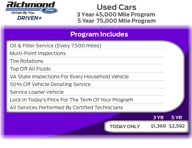 If you're looking for a way to save money on your vehicle's service and maintenance needs, you've come to the right place. DRIVEN + allows you to lock in prices for services such as tire rotations, VA state inspections, oil changes, and more. Saving you up to 49% off your vehicle's maintenance!