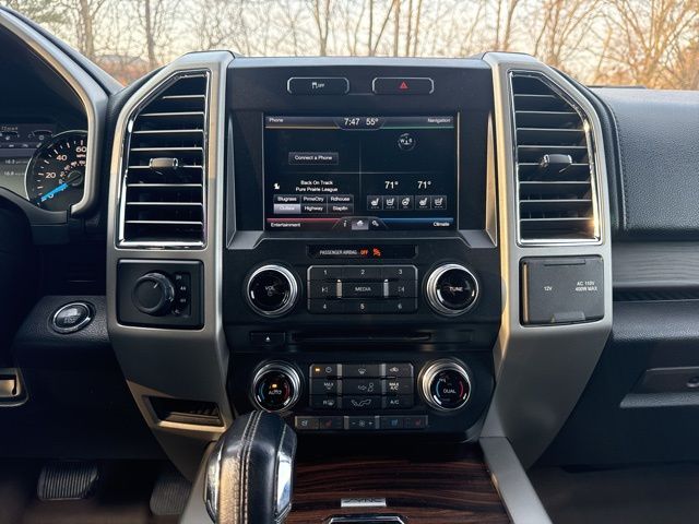 Equipment Group 502A Luxury (110V/400W Outlet, 2nd Row Heated Seats, Automatic High Beam w/Rain-Sensing Wipers, BLIS Blind Spot Information System, Heated Steering Wheel, Leather-Trimmed Bucket Seats, LED Side-Mirror Spotlights, Power Tilt/Telescoping Steering Column w/Memory, Quad Beam LED Headlamps & Taillamps, Radio: Sony Single CD w/HD & SiriusXM Satellite, Remote Start System, Reverse Sensing System, Universal Garage Door Opener, and Voice-Activated Navigation), GVWR: 6,500 lbs Payload Package, Lariat Chrome Appearance Package (Chrome 3-Bar Style Grille w/Chrome Surround, Chrome Angular Step Bars, Chrome Door Handles w/Body-Color Bezel, Chrome Skull Caps on Exterior Mirrors, Single-Tip Chrome Exhaust, and Wheels: 18" Chrome-Like PVD), 18" Machined-Aluminum Wheels, 4-Wheel Disc Brakes, 7 Speakers, ABS brakes, Adjustable pedals, Air Conditioning, Alloy wheels, AM/FM radio: SiriusXM, Auto-dimming door mirrors, Auto-dimming Rear-View mirror, Automatic temperature control, Brake assist, Bumpers: chrome, CD player, Class IV Trailer Hitch Receiver, Compass, Delay-off headlights, Driver door bin, Driver vanity mirror, Dual front impact airbags, Dual front side impact airbags, Electronic Stability Control, Exterior Parking Camera Rear, Front anti-roll bar, Front Center Armrest w/Storage, Front dual zone A/C, Front fog lights, Front License Plate Bracket, Front reading lights, Front wheel independent suspension, Fully automatic headlights, Heated door mirrors, Heated front seats, Illuminated entry, Leather-Trimmed 40/20/40 Front Seat, Low tire pressure warning, Memory seat, Occupant sensing airbag, Outside temperature display, Overhead airbag, Overhead console, Panic alarm, Passenger door bin, Passenger vanity mirror, Pedal memory, Power door mirrors, Power driver seat, Power Glass Sideview Mirr w/Body-Color Skull Caps, Power passenger seat, Power steering, Power windows, Radio data system, Radio: Single-CD w/SiriusXM Satellite, Rear reading lights, Rear seat center armrest, Rear step bumper, Rear window defroster, Remote keyless entry, Security system, Speed control, Speed-sensing steering, Split folding rear seat, Steering wheel mounted audio controls, SYNC with MyFord Touch, Tachometer, Telescoping steering wheel, Tilt steering wheel, Traction control, Trip computer, Turn signal indicator mirrors, Variably intermittent wipers, Ventilated front seats, and Voltmeter.