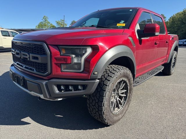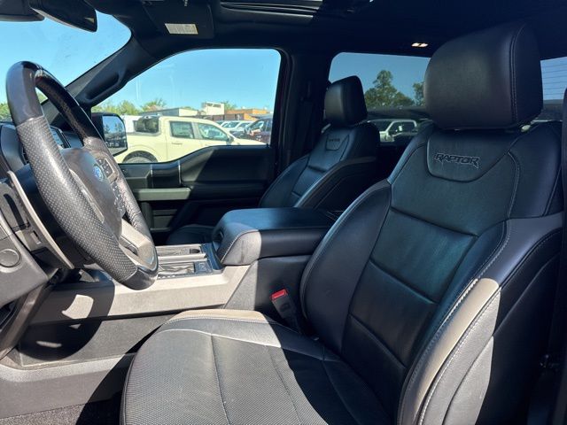 Equipment Group 802A Luxury (10-Way Power Driver & Passenger Seats, 360 Degree Camera, 4.10 Front Axle w/Torsen Differential, 8" Productivity Screen, Advanced Security Pack, Ambient Lighting - Ice Blue Color Only, BLIS Blind Spot Information System, Dual-Zone Electronic Automatic Temperature Control, Heated Steering Wheel, Inflatable Rear Safety Belts, Integrated Trailer Brake Controller, Intelligent Access w/Push-Button Start, LED Box Lighting, LED Sideview Mirror Spotlights, Memory System (Seat, Pedal, Exterior Mirror), Power Glass Heated Sideview Mirrors, Power Tilt/Telescoping Steering Column w/Memory, Power-Adjustable Pedals, Power-Sliding Rear Window, Pro Trailer Backup Assist, Radio: B&O Play Premium Audio System, Remote Start System w/Remote Tailgate Release, SYNC 3, SYNC Connect, Tailgate Applique FORD, Universal Garage Door Opener, and Voice-Activated Touchscreen Navigation System), GVWR: 7,050 lbs Payload Package, Raptor Exterior Graphics Package, Raptor Technology Package (Adaptive Cruise Control w/Collision Mitigation, Auto High Beam, and Lane-Keeping System), 17" Cast Aluminum Wheels, 4-Wheel Disc Brakes, 7 Speakers, 8-Way Power Driver's Seat w/Power Lumbar, ABS brakes, Air Conditioning, Alloy wheels, AM/FM radio: SiriusXM, Auto-dimming Rear-View mirror, Brake assist, CD player, Compass, Delay-off headlights, Driver door bin, Driver vanity mirror, Dual front impact airbags, Dual front side impact airbags, Electronic Locking w/4.10 Axle Ratio, Electronic Stability Control, Emergency communication system: 911 Assist, Exterior Parking Camera Rear, Front anti-roll bar, Front Bucket Seats, Front Center Armrest, Front fog lights, Front License Plate Bracket, Front reading lights, Front wheel independent suspension, Fully automatic headlights, Heated Leather 40/Console/40 Front Seats, Illuminated entry, Leather steering wheel, Low tire pressure warning, Occupant sensing airbag, Outside temperature display, Overhead airbag, Overhead console, Panic alarm, Passenger door bin, Passenger vanity mirror, Power door mirrors, Power driver seat, Power steering, Power windows, Radio data system, Rear Parking Sensors, Rear reading lights, Rear step bumper, Rear window defroster, Remote keyless entry, Second-Row Heated Seats, Security system, Speed control, Speed-sensing steering, Split folding rear seat, Spray-In Bedliner (Pre-Installed), Steering wheel mounted audio controls, SYNC, Tachometer, Tailgate Step w/Tailgate Lift Assist, Telescoping steering wheel, Tilt steering wheel, Traction control, Trip computer, Twin Panel Moonroof, Unique Cloth Trim Seats, and Variably intermittent wipers.