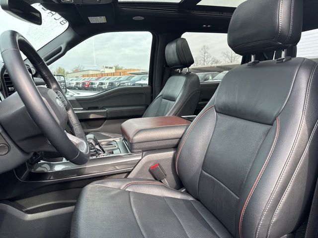 Equipment Group 502A High (Onboard 400W Outlet and Wireless Charging Pad), Ford Co-Pilot360 Assist 2.0 (DISC) (Connected Built-In Navigation, Evasive Steering Assist, Intelligent Adaptive Cruise Control w/Stop & Go, Intersection Assist, and Speed Sign Recognition), Lariat Sport Appearance Package (Accent-Color Angular Step Bars, Body-Color Front & Rear Bumpers, Box Side Decals, Chrome Single-Tip Exhaust, Dark 2-Bar & 1 Minor Bar Style Grille, and Wheels: 18" 6-Spoke Machined Aluminum), Trailer Tow Package (Class IV Trailer Hitch Receiver, Integrated Trailer Brake Controller, and Pro Trailer Backup Assist), 18" Machined-Aluminum Wheels, 360 Degree Camera, 4-Wheel Disc Brakes, 7 Speakers, ABS brakes, Adjustable pedals, Air Conditioning, Alloy wheels, AM/FM radio: SiriusXM with 360L, Auto High-beam Headlights, Auto Start-Stop Removal, Auto-dimming door mirrors, Auto-dimming Rear-View mirror, Automatic temperature control, Brake assist, Bumpers: chrome, Compass, Delay-off headlights, Driver door bin, Driver vanity mirror, Dual front impact airbags, Dual front side impact airbags, Electronic Stability Control, Emergency communication system: SYNC 4 911 Assist, Extended Range 36 Gallon Fuel Tank, Exterior Parking Camera Rear, Front anti-roll bar, Front Center Armrest w/Storage, Front dual zone A/C, Front fog lights, Front reading lights, Front wheel independent suspension, Fully automatic headlights, Heated door mirrors, Heated front seats, Illuminated entry, Leather-Trimmed 40/20/40 Front Seat, LED Sideview Mirror Spotlights, Low tire pressure warning, Memory seat, Occupant sensing airbag, Outside temperature display, Overhead airbag, Overhead console, Panic alarm, Passenger door bin, Passenger vanity mirror, Pedal memory, Power door mirrors, Power driver seat, Power passenger seat, Power steering, Power windows, Radio data system, Radio: AM/FM SiriusXM w/360L, Radio: B&O Unleashed Sound System by Bang & Olufsen, Rear reading lights, Rear seat center armrest, Rear step bumper, Rear window defroster, Remote keyless entry, Security system, Speed control, Speed-sensing steering, Split folding rear seat, Steering wheel mounted audio controls, SYNC 4 w/Enhanced Voice Recognition, Tachometer, Telescoping steering wheel, Tilt steering wheel, Traction control, Trip computer, Turn signal indicator mirrors, Twin Panel Moonroof, Variably intermittent wipers, Ventilated front seats, Voltmeter, and Wheel Well Liner.
